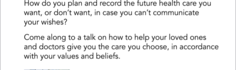 I’m organising this information session. When Dad got terminally ill last year, I regretted not ever having talked with him about his health care wishes. Now that I’m home I […]