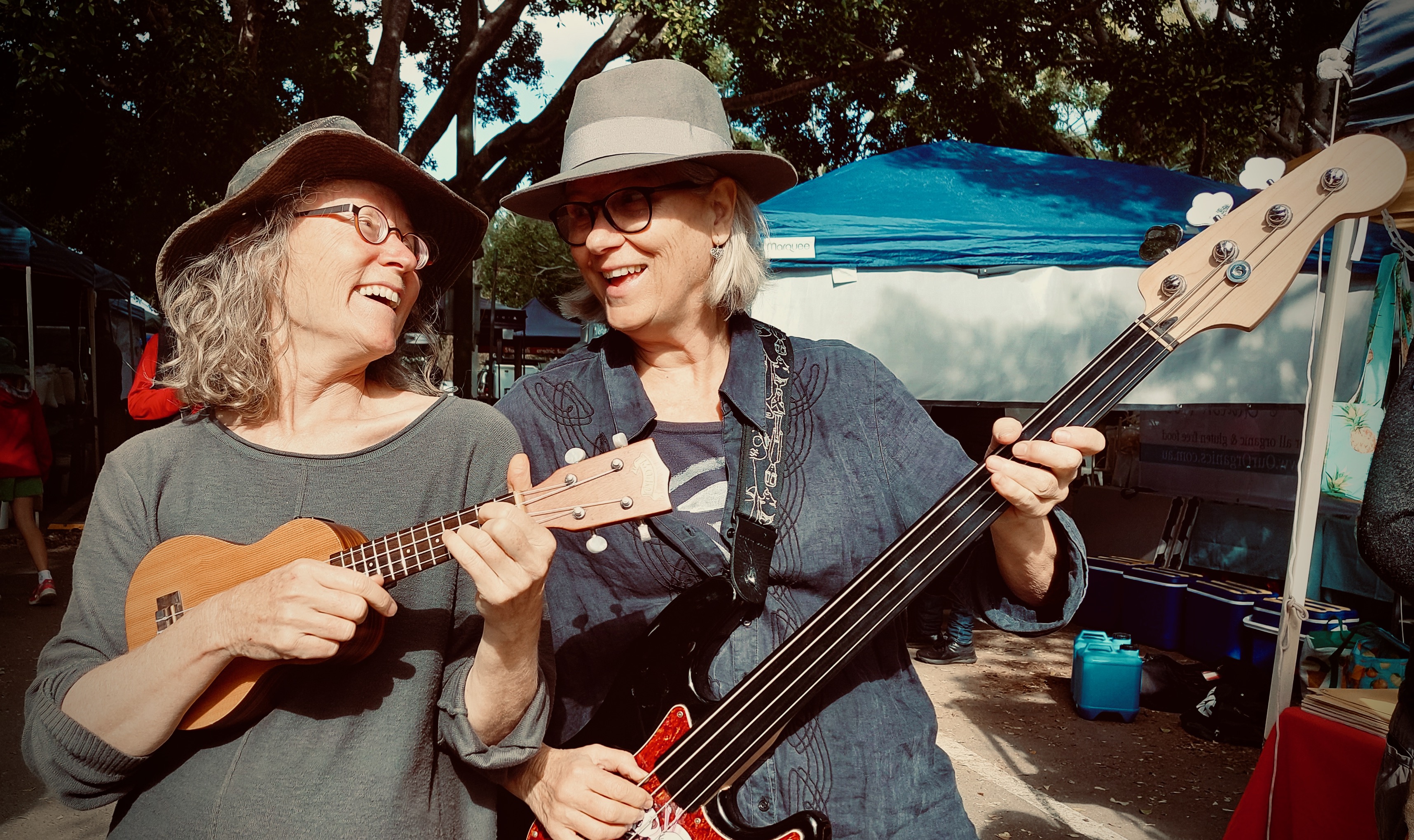 Duo of Jenny Fitzgibbon (ukulele and vocals) and Lyn Bardsley (fretless electric bass and vocals). Performing songs with crucial themes with even more crucial humour. We do protests, parties, anything!